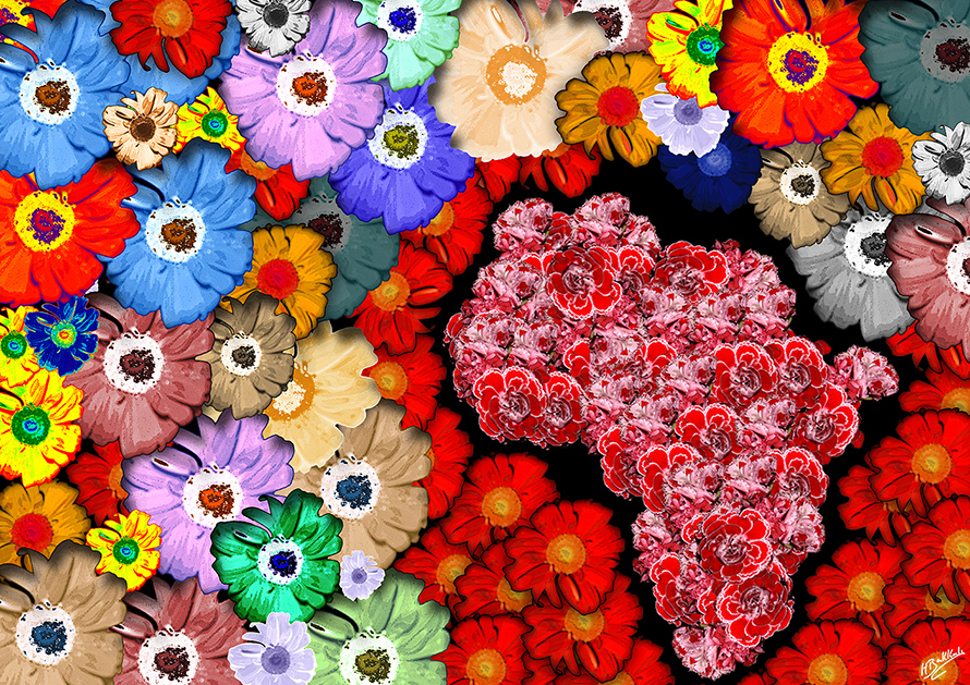 Diplômée en communication, passionnée par le cinéma et la conception numérique, elle commence à publier ses oeuvres en 2008. Elle rend hommage au continent africain par le collage digital vif et coloré “África Sweet and Pop” : une volonté affirmée de représenter un continent rempli d’espoir qui lutte pour un futur meilleur.